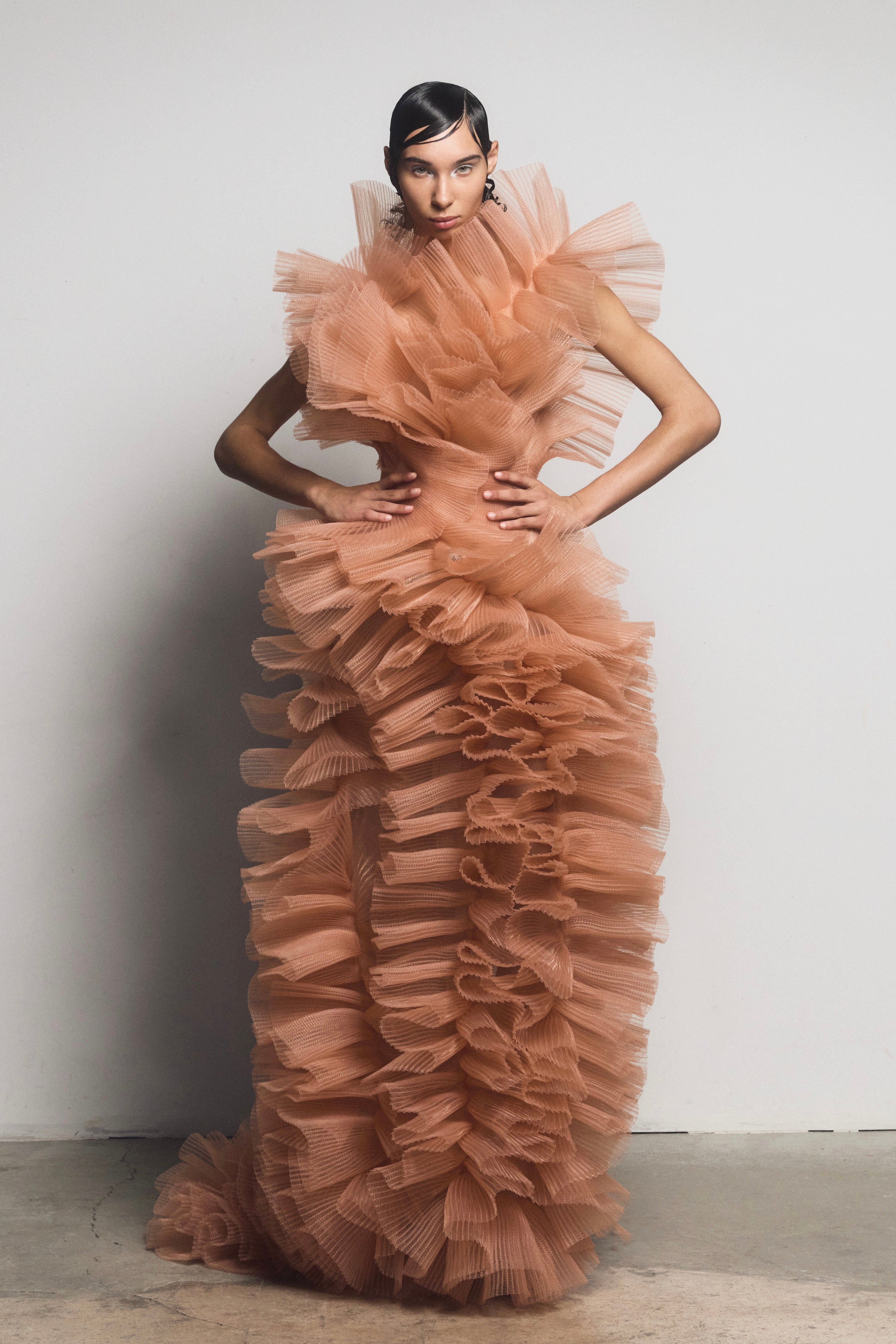 Paris Haute Couture debut at the iconic Palais de Tokyo. An exploration of self-construction through couture how we build who we are, stitch by stitch, choice after choice. This collection examines the tension between vulnerability and power, each piece simultaneously revealing and concealing fragments of identity culture, trauma and beauty.
